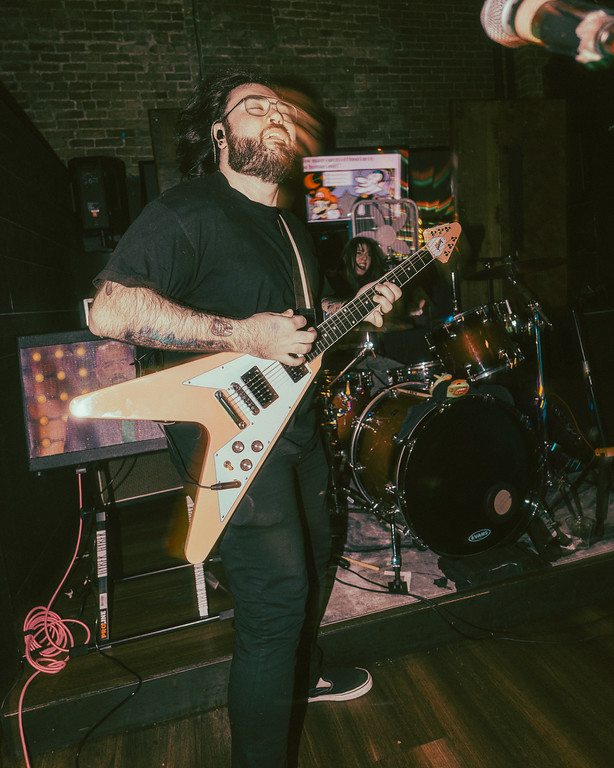 Kicking things off with a mix of modern hardcore-influenced pop punk and late ‘90s hard rock was Boston’s own Cherubhead, mostly playing songs off their latest EP aptly titled Modern Dread. Shelling out traditional pop-rock structures and hooky vocal melodies on songs such as “Jail” and “Freaking Me Out” didn’t stop them from embracing their heavier side in front of the packed audience. With vocals evoking alt-rock bands of yesteryear and guitars that seamlessly mix the shimmer and crunch of bands like Drug Church, Militarie Gun, and Prince Daddy & the Hyena, Cherubhead delivered their dirty brand of rock with choruses drenched in grungy and often poppy influences. They even surprised the crowd of gamers with a welcome singalong cover of Weezer’s “Say It Ain’t So.”
